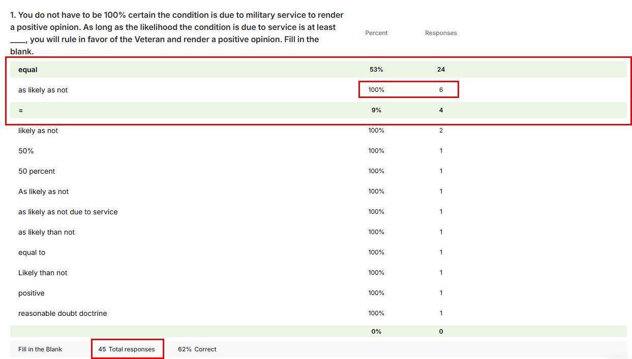 We have a quiz in which Reach reports that Question 1 had 45 responses. Of that 45: