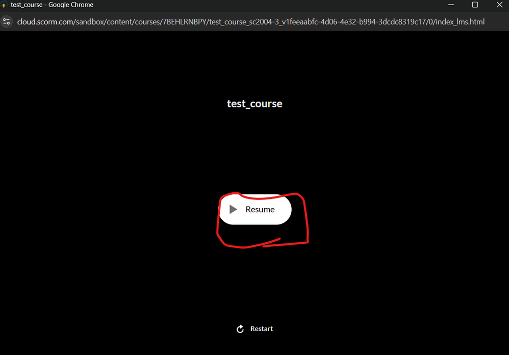 - In SCORM Cloud upload a new course using test_course_sc2004-3_v1.zip