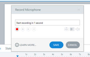 I'm trying to record audio narration in Storyline. I've done this many many times before with no issues. When I click the red button to record it counts down from 2 seconds to 1 second and just stay...