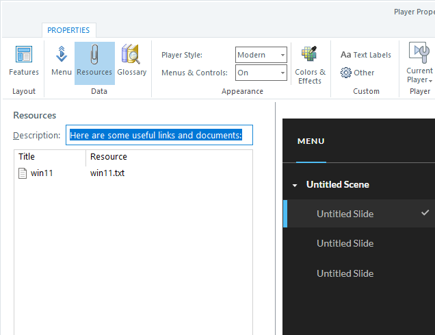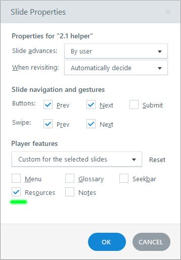 My only negative is there's no option to pick/select the uploaded file via the trigger wizzard which is annoying. I would like an option that allows Storyline to display any uploaded resources in the dropdown so you don't have to type it in manually?