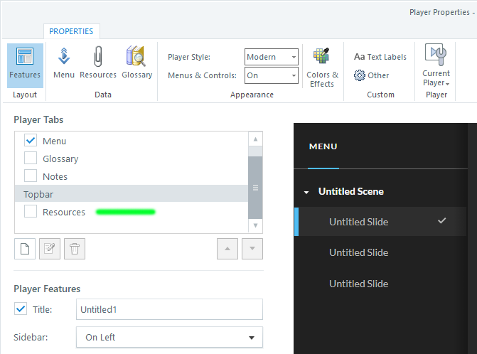 - Override showing the resources tab with above custom Javascript if we don't want it to show in the player