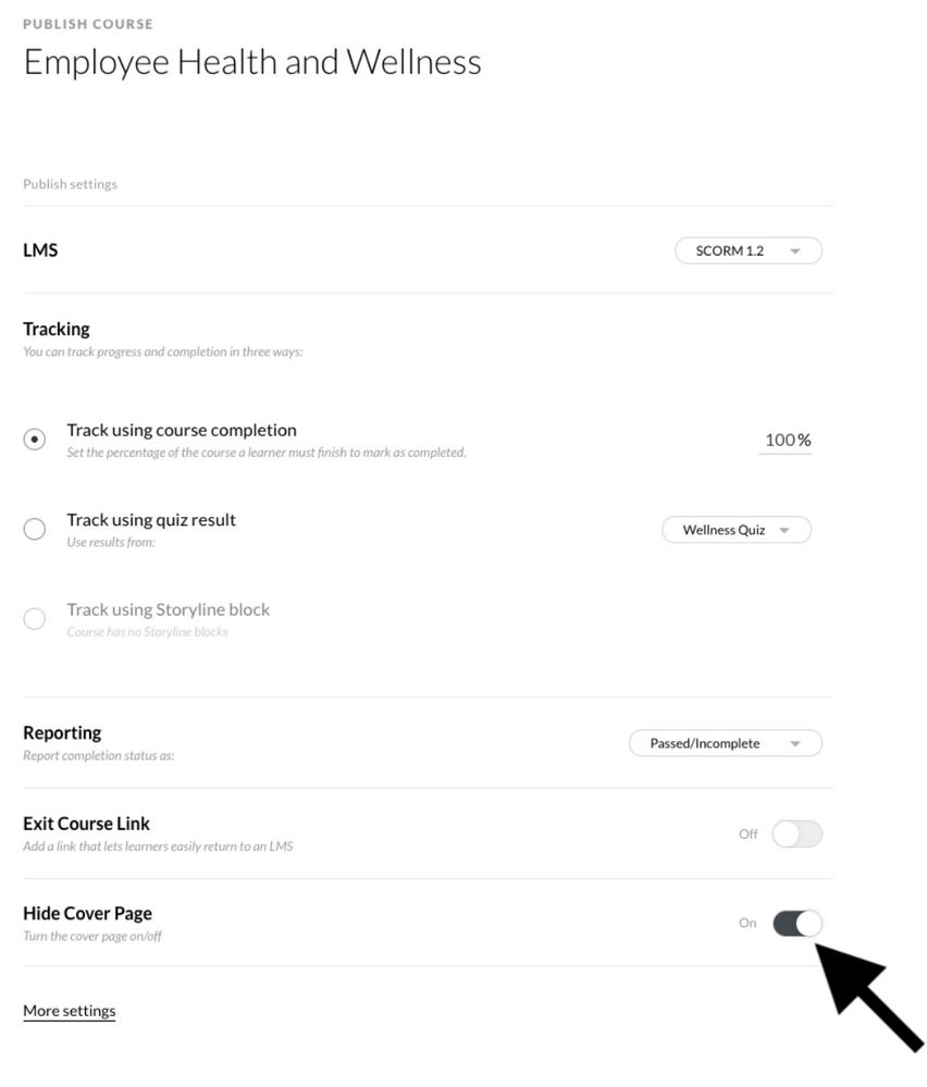 We've added the option to remove the course cover page for LMS exports, and we're hoping to get feedback that this design works well! We're considering adding it for web exports as well. Since the Share link is not a long-term hosting solution, we won't consider this feature for Share link output.