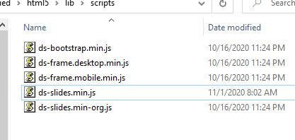 Forgive my lack of understand, but when I go into this folder, I do not see ds-slides. All I see is slides.min.js. Do I just need to add ds-slides.edits.js to this folder to make this work?