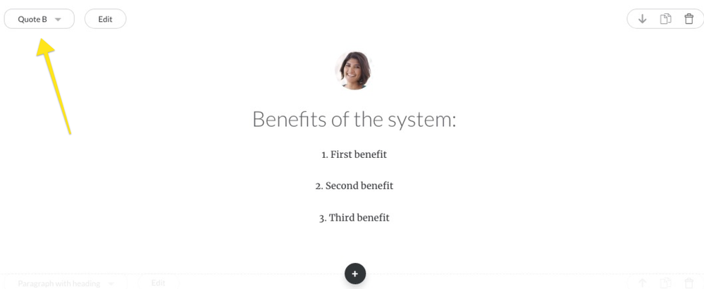 On the CONTENT tab, copy and then delete all text from the Quote area, and leave this area blank.