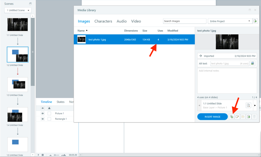 If you have an image being used in multiple slides, you can quickly swap out this image with another one using the Media Library's Replace function.