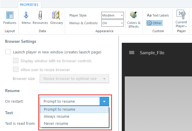Caveat: All that work would be in vain if you set the course to "Prompt to resume." That option would let them say "No" (that is, don't resume), which would start the course as if they were taking it for the first time. Then again, if the course has restricted navigation, they would have to step through the entire course again to get the quiz. Still, that would also mean they'd have to start all over even if they just left the course a bit before the quiz to take a break. So there's no perfect option.