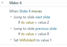 ARGH!!! Still not responding as I want it to. the variable is changing, but the slider is not. It works if I go from slide 1, to 2, to 1, and back to 2. It does not work if I go from slide 1, to 2, to 3, and back.
