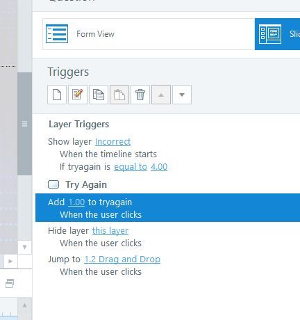 Thanks Rebecca for the cool drag and drop interaction screencast(3 years ago). I have tried it and it almost works, but I don't get the Incorrect layer - it jumps to the page the Incorrect layer jumps to without stopping at the Incorrect layer. I have attached it. Does anyone know what I'm doing wrong?