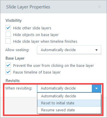 This is separate from the Slide Properties of the base. So, for example, you could have the base set to "Resume saved state" and some or all of the layers set to "Reset to initial state."