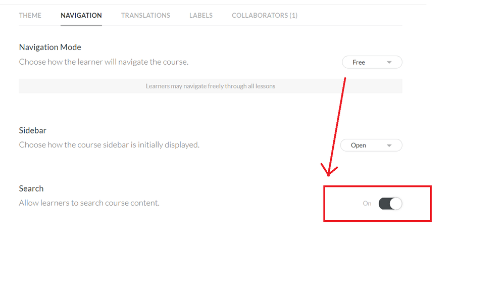 Hi Diana! The search option is only available for the Free Navigation setting. If you choose Restricted, the search option won't be available even if the learner finished the course for the first time and then revisited it.