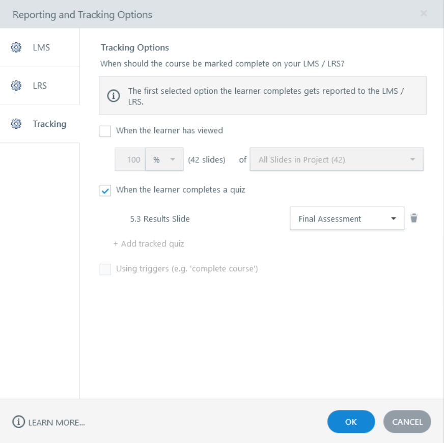 - Tracking: Result slide (Final Assessment)