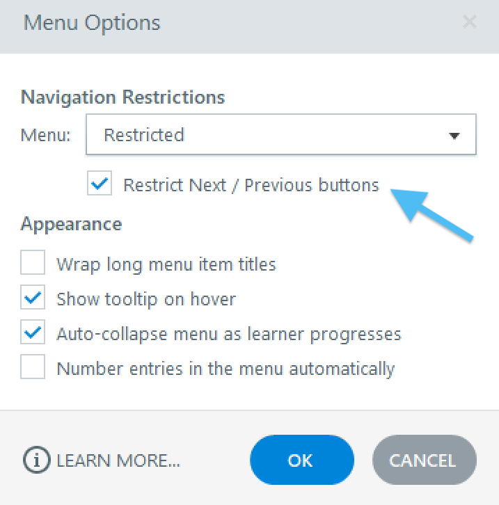 The issue I have is that a menu lets you navigate sections in your preferred order. Once a section is complete, that sections gets ticked on the menu. You can only complete the course if all sections are ticked.