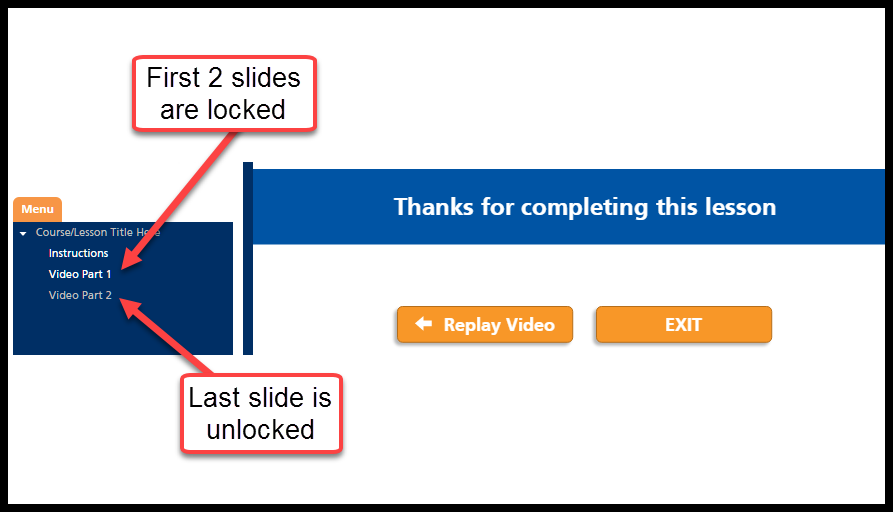 Here is an image showing that I'm on the last slide and it's dimmed, but the bright white text in the menu shows that these look like they have never been visited. They also can not be clicked with anything happening.
