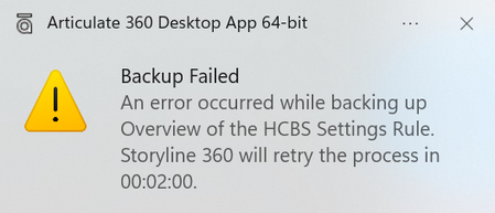 Sorry to hear you're having trouble with Storyline 360's Cloud Backup feature!