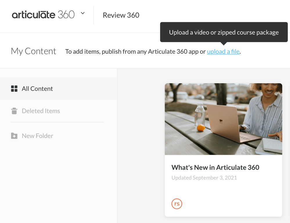 And if you need to upload published Storyline 360 courses or videos manually, you can do that too.