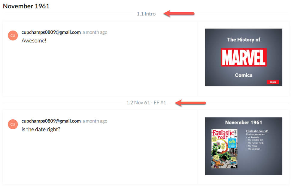 Now you will see the slide names above each comment!