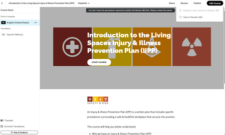 I've been having trouble publishing one of our courses to the Review 360 environment. It's using the new localization feature, but it's telling me that I'm not the owner when I am (screensho...