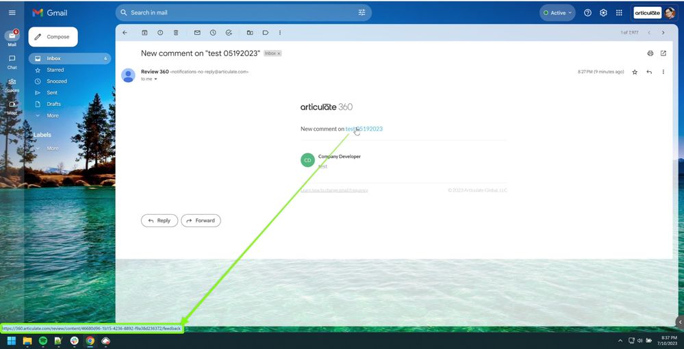 - There are at least two issues reported in this thread. Please provide more details on what you're seeing. Do the notification email links point erratically to the Review login page instead of the Feedback page? I ran some tests and confirmed that this issue is no longer happening. If you're running into this snag, kindly send a similar screenshot as the one below.