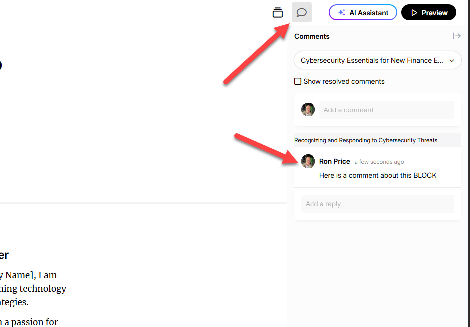 RonPrice's callout about the comment toggle is a good one, and it does help in many cases. That said, you’re right that once a block is opened for editing, those comments aren’t visible anymore, which makes it harder to act on feedback without switching views or copying notes elsewhere.