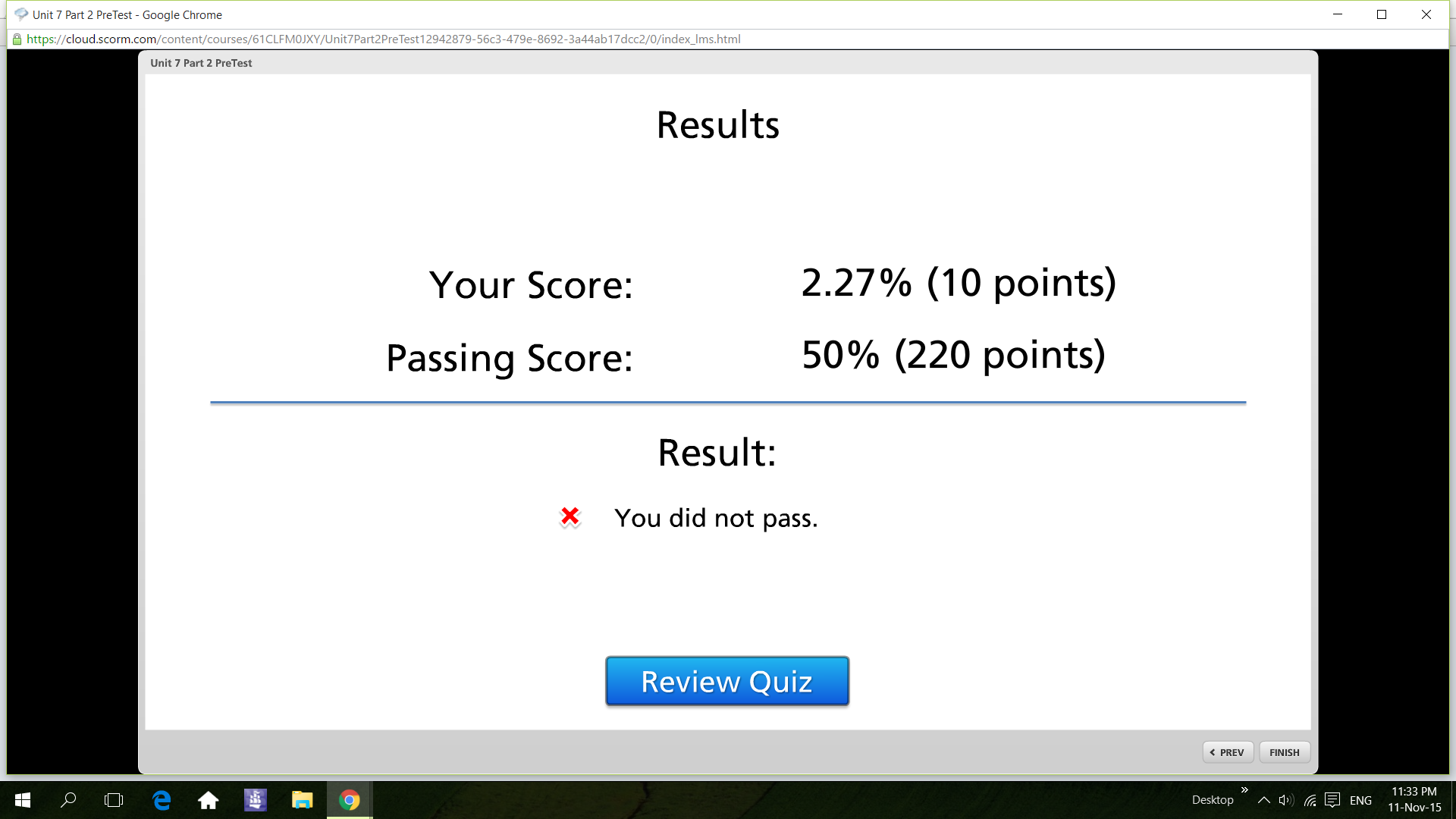 I ran through the quiz in the SCORM Cloud and it's all the same.