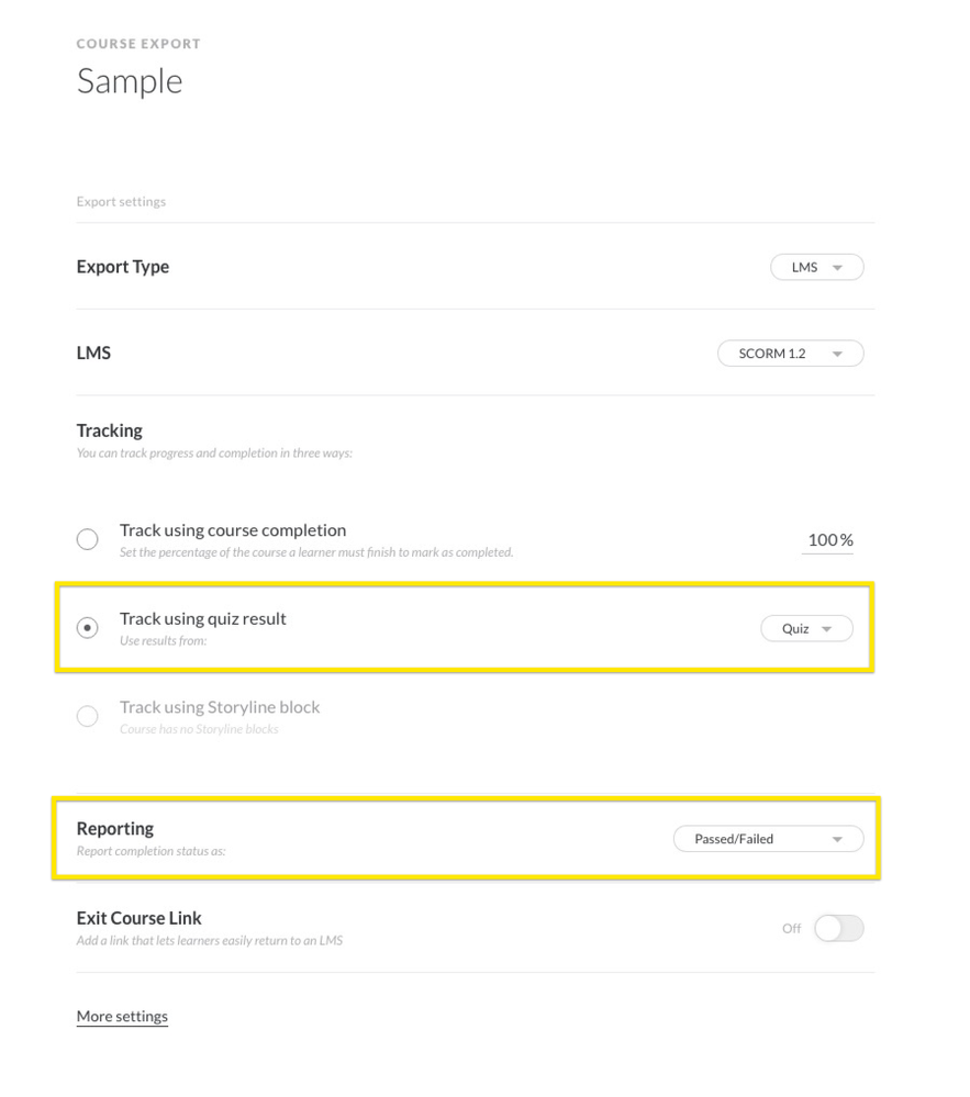 Hi, I'm using the quiz in Rise for some big exams. The exams only have 2 tries, and currently I have a lesson after the quiz thanking the trainee for completion and congratulating them on becoming certified in their subject matter. However, if they fail both attempts, I need to track this in my LMS. Right now I use the "Require passing score for continue button" in the quiz, however, when they fail and close the course, the status remains "In progress".