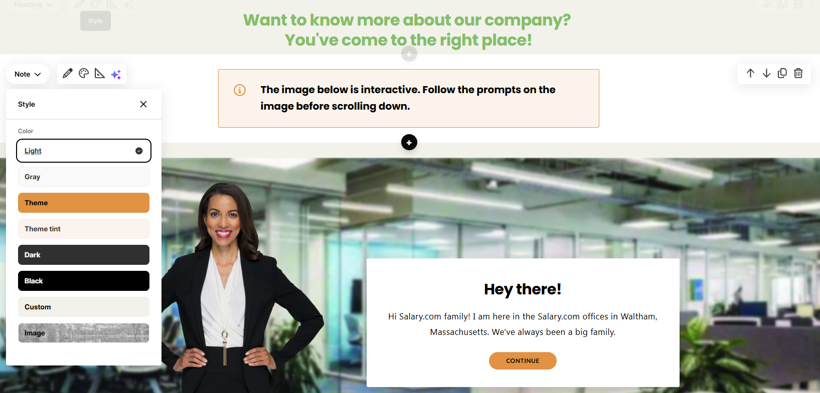 I have a client who wants an alternative color background for their Rise course (off-white #F2F2EB). I can do this by changing each block to this custom color but if I change the Note block it gets rid of the lovely highlight orange for the outline and pale orange for the fill (from my custom course settings) when I click on the Light option. Is this a bug? Or is there a way to have the off-white background on a Note block to match the rest of the course whilst keeping the flash of orange as the outline and fill as well as the little info icon. Attached images show the different settings.