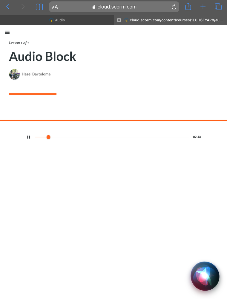 Rise course - Duration time on Audio on Ipad is displayed as: ty:aN