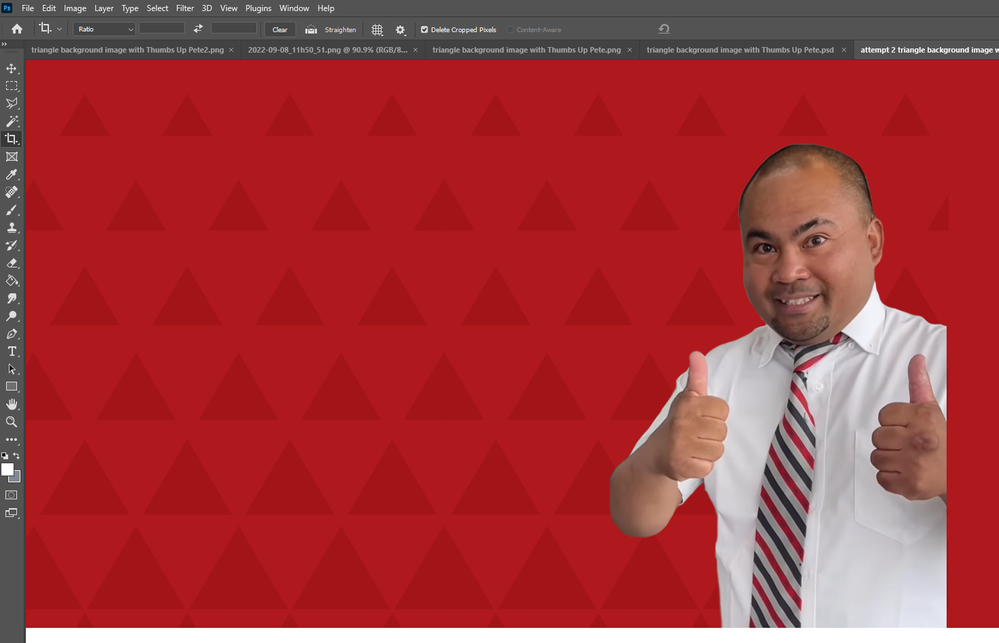Most versions looked more like this (distortion along the person and even the triangles are extremely blurry. The size of this image is 2908 x 969, which should be more than adequate but is cropped at 3:1.