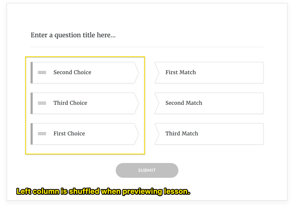 The options on the left should be shuffled in a Rise 360 matching knowledge check block. Do you notice that the left column is shuffled when you preview the lesson?