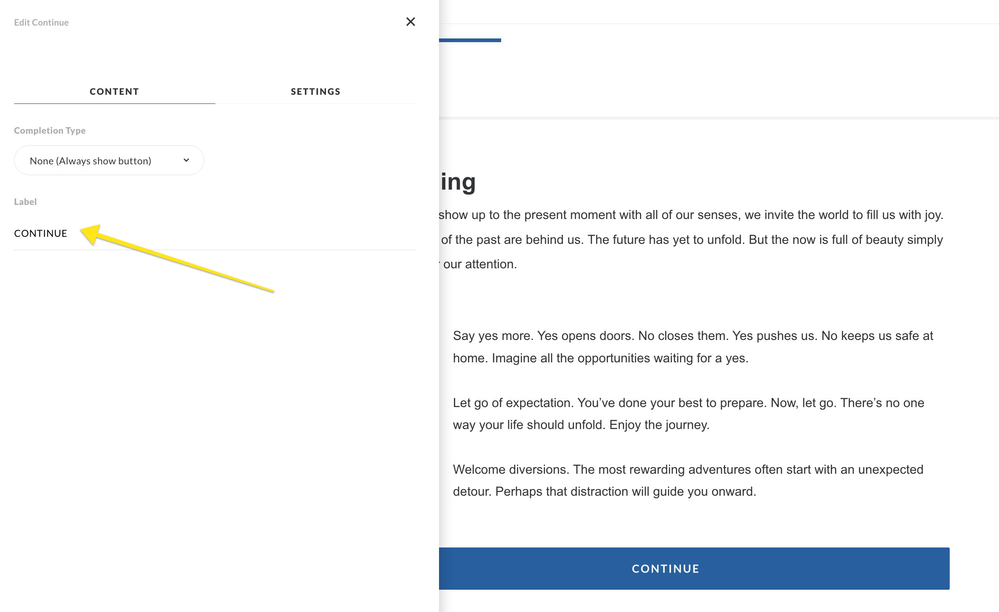 Karl is spot on! Here's where you can edit the label of those continue divider buttons.