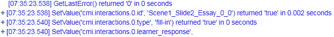 - LMS Problem: For LMS's that have more strict SCORM implementations, they see an interaction type of "fill-in" from storyline, but then for example are sent 3,000 characters from the essay question. Because of the "strictness" of the LMS SCORM implementation, and the LMS interpretation the data as a "fill-in" from Storyline, the 3,000 characters don't fit within the 256 character limit and either omits the data or it causes a database error so the data is not stored.