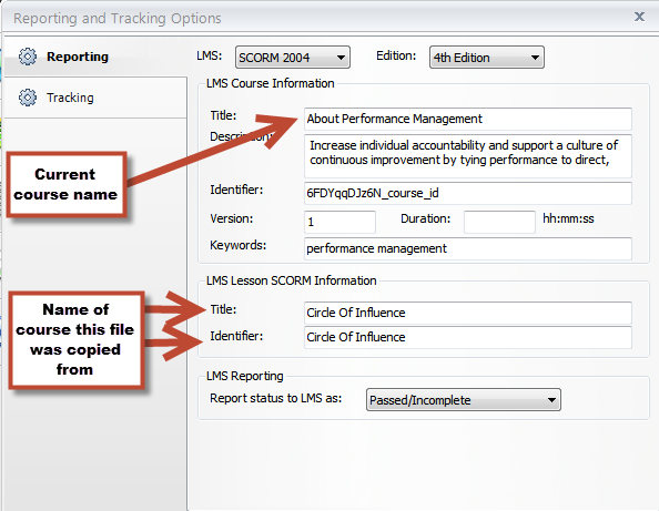 This may be just me, but shouldn't this SCORM metadata default in Storyline to what the current name of the course is, even if it is a copy of another course?