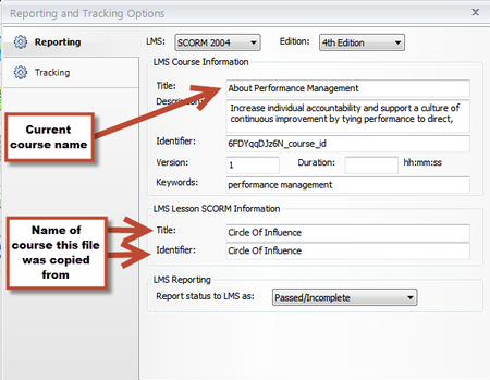 The Identifier is a unique string of characters assigned by Storyline that your LMS uses to identify your course. If you're republishing a course that's already in your LMS, don't change the value in this field.