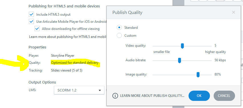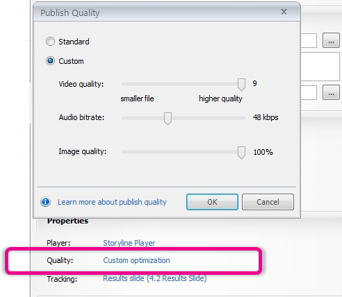 I'm quite disappointed with the poor quality of screen capture video. Even with the settings maxed out for publishing the video I capture from my screen, the video quality is terrible. I have to use another program to capture the video, then insert into Storyline.