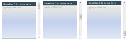 I have implemented a scroll panel which has about 8 text entry boxes and at a given time only one text box is displayed to user. Now the requirement is to display one among 8 te...