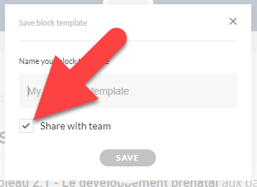 When saving a Block Template in Rise, the "Share with team" option is checked by default.