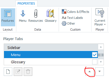 Then click on the up arrow (circled in red) to position the menu tab where you'd like it to reside in the player.