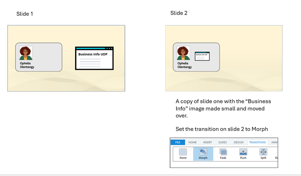 Morph detects what has changed between one slide and the next and it will smothly move and resize the object.