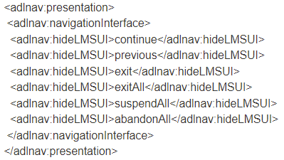 node that instructs Success Factors to hide some SCO navigation buttons it shows into the top of the course window for all SCORM 2004 courses.