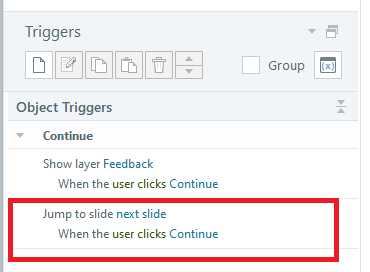 Hi, I used a pick one to allow multiple text entries. I added to the basic pick one a layer of feedback to show the correct answer. The problem is that this feedback layer is advancing to the next slide after just a second. I cannot find the trigger that is causing this. Any ideas on how to resolve this? Thanks for any suggestions.