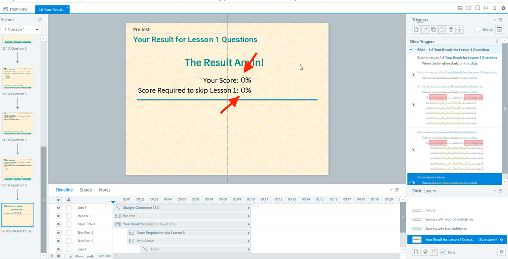 Without looking at your .story file, my initial thought would be that it's related to a trigger somewhere else in the project. If you preview that single Results slide, does it work?