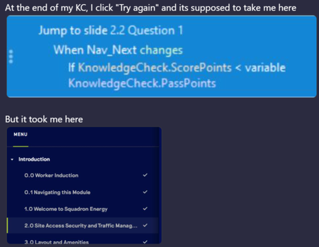 When a learner gets a question wrong a second time, we lightbox the slide with the relevant information, so the learner can make an informed answer on their third attempt. We have the Nav_Next triggers on the slide that is lightboxed, but we have a condition on the Show Nav layer on the Master Slide to only show the layer if the slide is inside the player frame (i.e. not lightboxed).