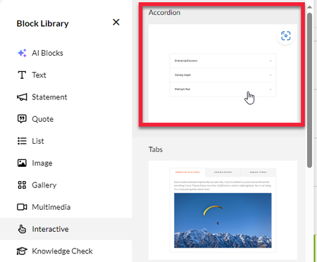 Hello, I’m using Accordion block in my Rise course, sometimes I need to insert new items into an existing list or reorder the items. Is there any way to freely sort items in the Accordion block direc...