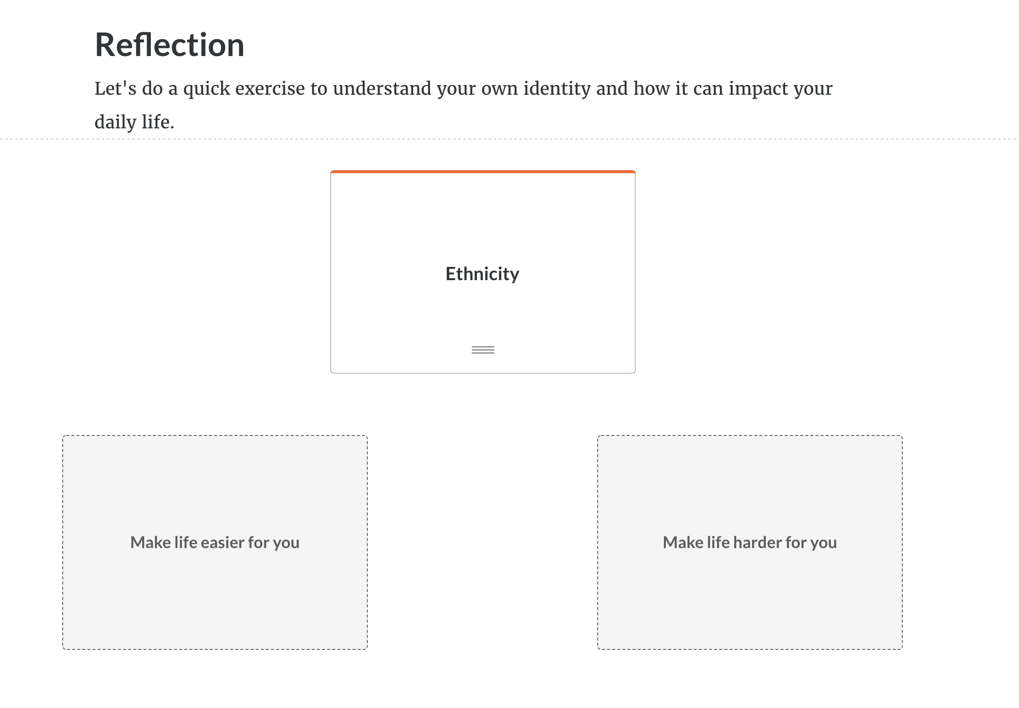 - Use a Storyline block, and design the interaction to mimic the sorting block, but with no right/wrong answers.