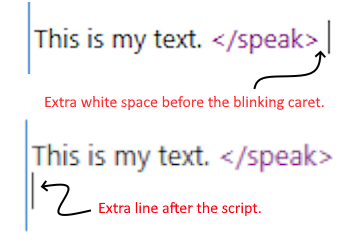 - Storyline reads the SSML tags in the TTS script if there is a blank space or line break at the beginning/end of the code