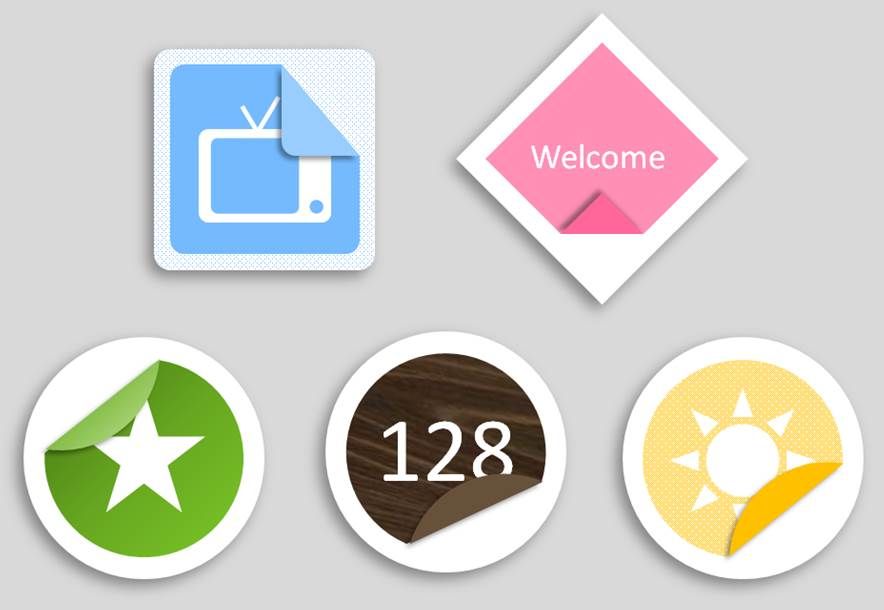 EDIT2: As per Jeff's kindly suggestion I created some new stickers in PowerPoint - with new shapes and refreshed look (gradient, texture and pattern fills). Here's a screenshot of the content: