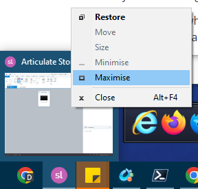 https://community.articulate.com/discussions/articulate-storyline/storyline-360-won-t-restore-when-minimizedworkaround when this happens -> "Maximise"