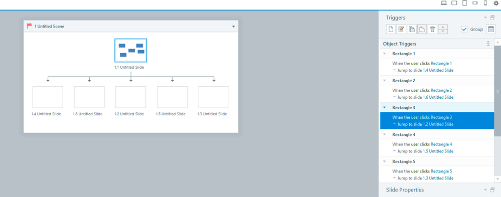 It's a time-waster for me why the visual position of slides in Story View will change based on the order in which shapes/buttons on another slide were added. As I mentioned before, this wouldn't be as big a deal, except that it directly affects how an editor can page or click through thumbnails in the left panel in Story View, especially in branched scenarios, This can lead to errors in triggers that are harder to troubleshoot in Story View because the slides are not in a logical order and cannot be forced to remain in that logical order when I drag them into place.