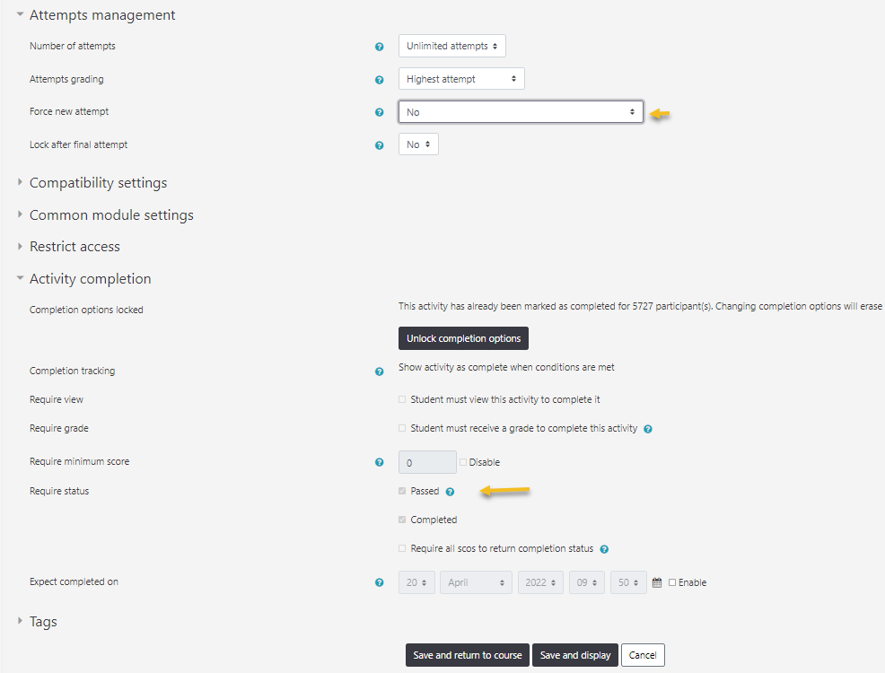 We have the "prompt to resume" on restart selected and we have the "allow drag after completion" also selected. Does anyone know if this is a Moodle issue or if there is something that we can select within Articulate so that it knows the student has already started/completed the course?
