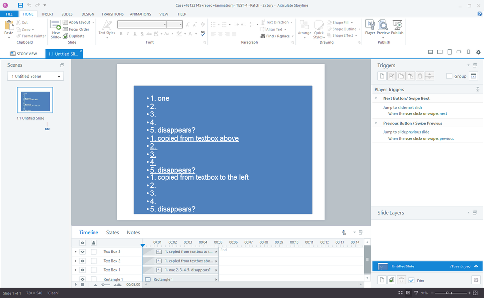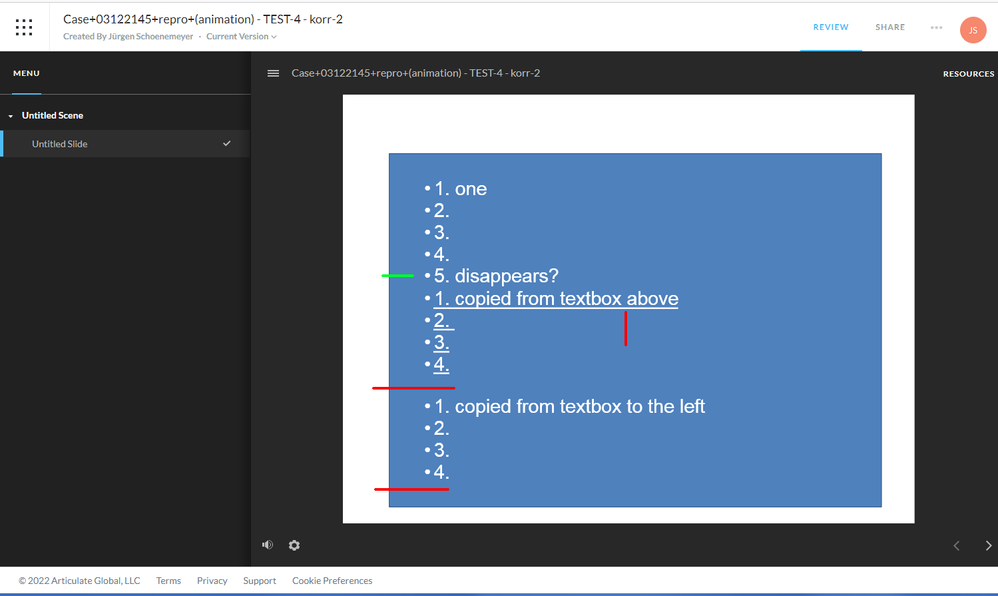 => block 2, 3: missing 5th line and strange "underline" animationthe error is VERY old - there is a thread NINE year old* and if it's the same error, it was copied from storyline 3 to storyline 360